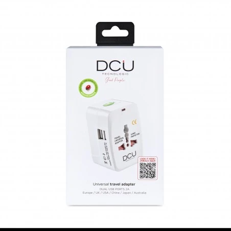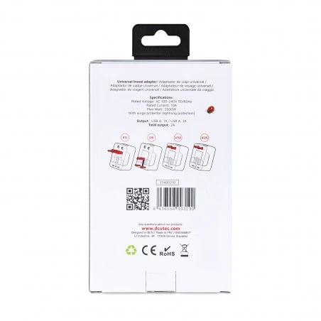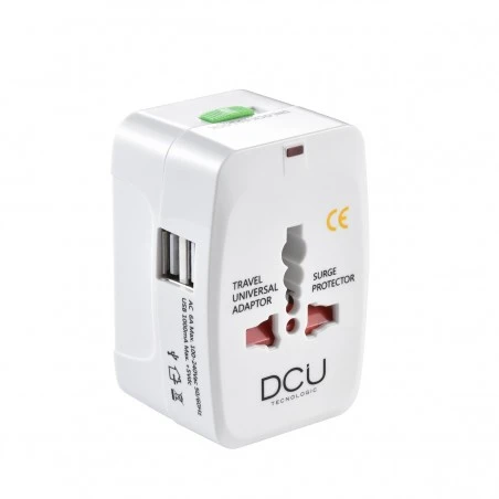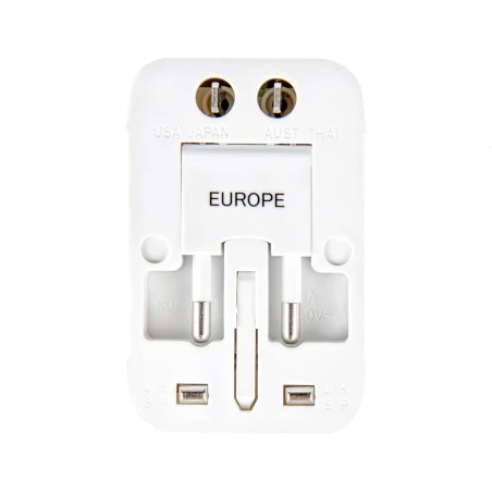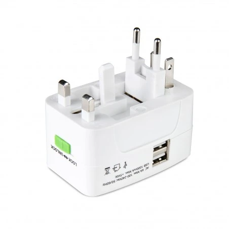 Pieza compacta con 4 adaptadores internacionales y 2 puertos USB