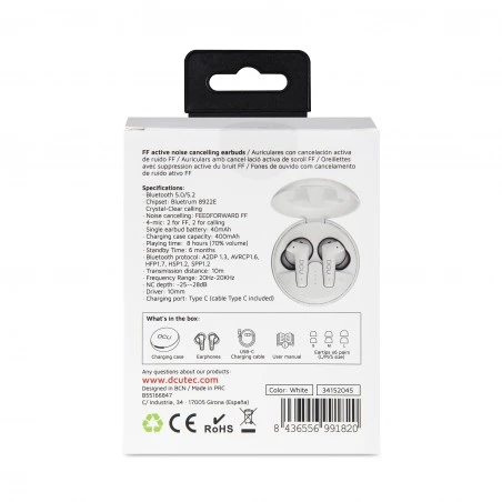Auriculares Bluetooth 5.0/5.2 con cancelación activa de ruido CON CONFIGURACIÓN FEEDFORWARD