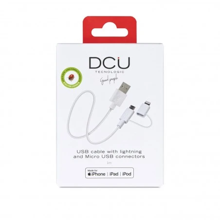Conexión Lightning y Micro USB a USB de color blanco de 1 metro.