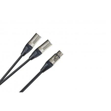 2 conectores XLR macho de 3 polos con cubierta de níquel y contactos de plata. Fiable, fácil de montar y buena integridad de contacto, también como protector de cable.