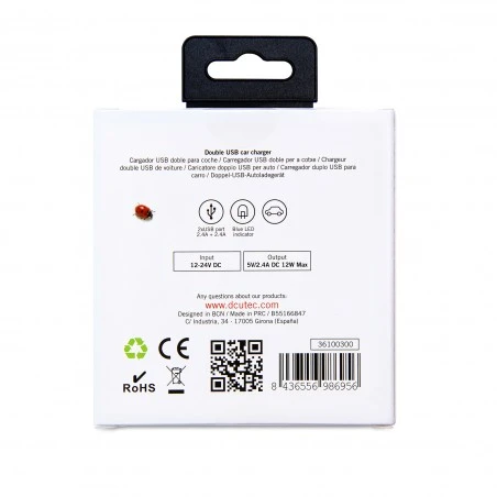 Cargador USB doble de coche para dispositivos Apple y Android de 2,4 + 2,4 Amperios para cargar múltiples dispositivos al mismo tiempo.