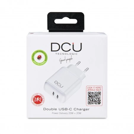 Cargador doble USB tipo C de 20W + 20W con Power Delivery