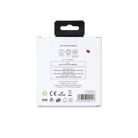 Salida 2 PC20W USB-C: 5V3A, 9V2.25A, 12V1.67A