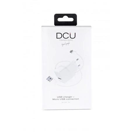Cargador 1 puerto USB a 2,4A + cable micro USB blanco en PVC de 1 metro