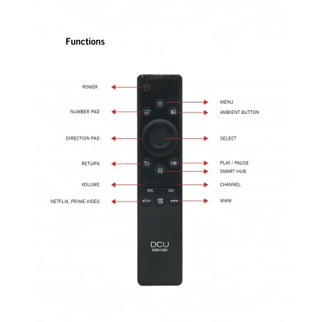 Mismas funciones que el mando original de Samsung (no dispone de función de control de voz)