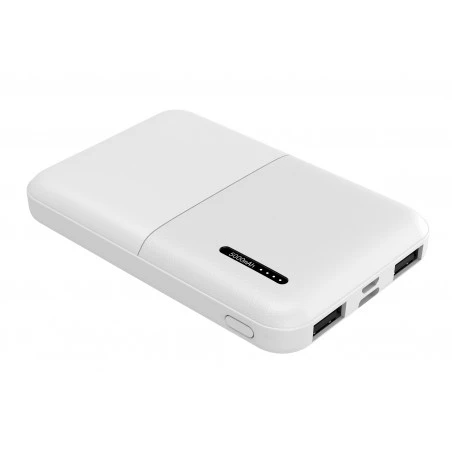 Batería externa con triple puerto USB (total 5V/2.1A) que permite cargar 3 dispositivos móviles al mismo tiempo.