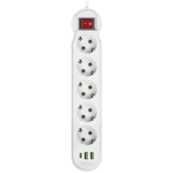Regleta Multifunción 5 Tomas + 3 Puertos USB (5V/ 2.1A) 10.5W