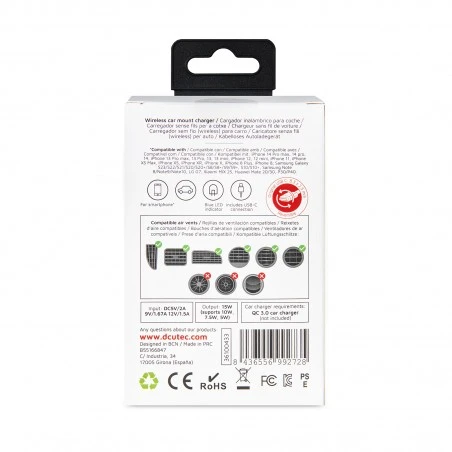 Soporte De Móvil GLASS Para Coche Con Carga Rápida Inalámbrica 15W